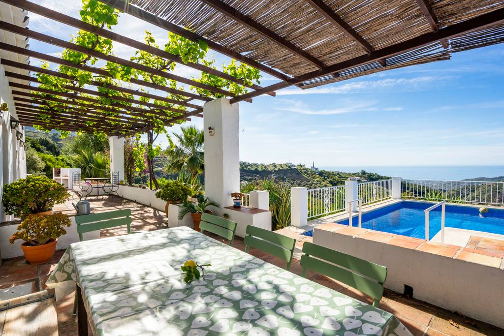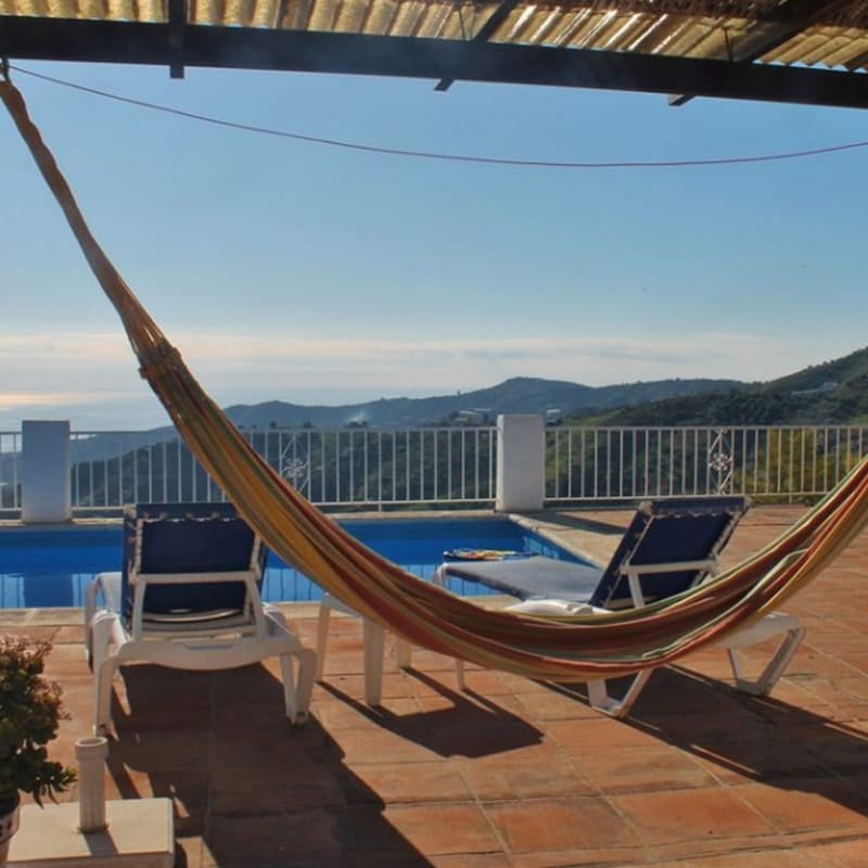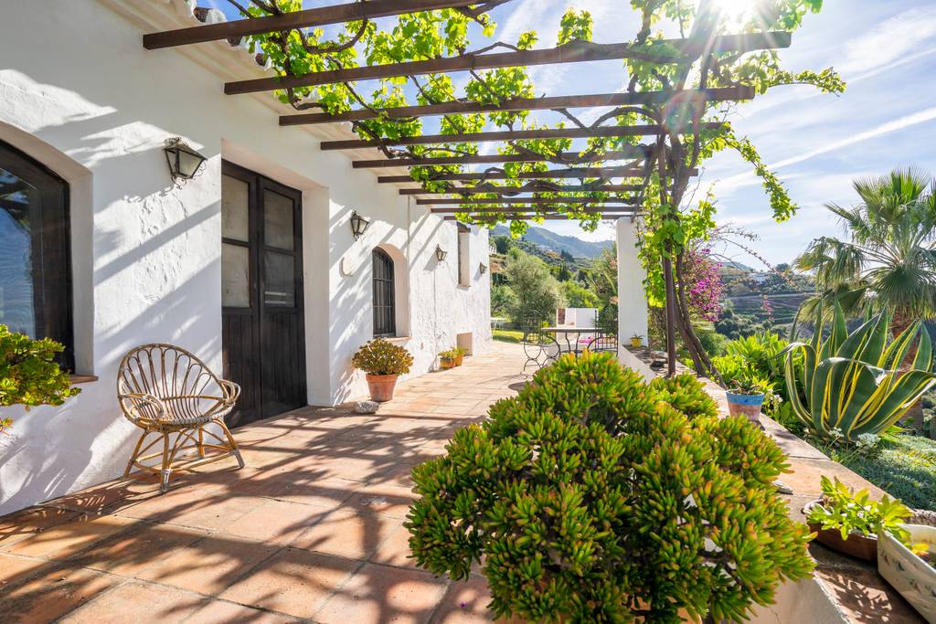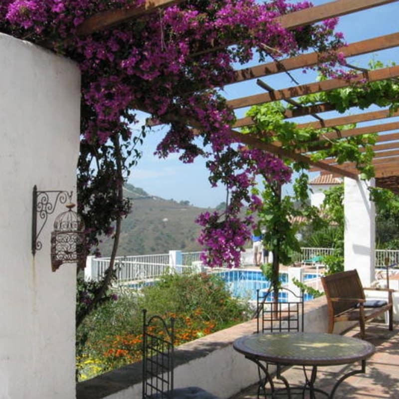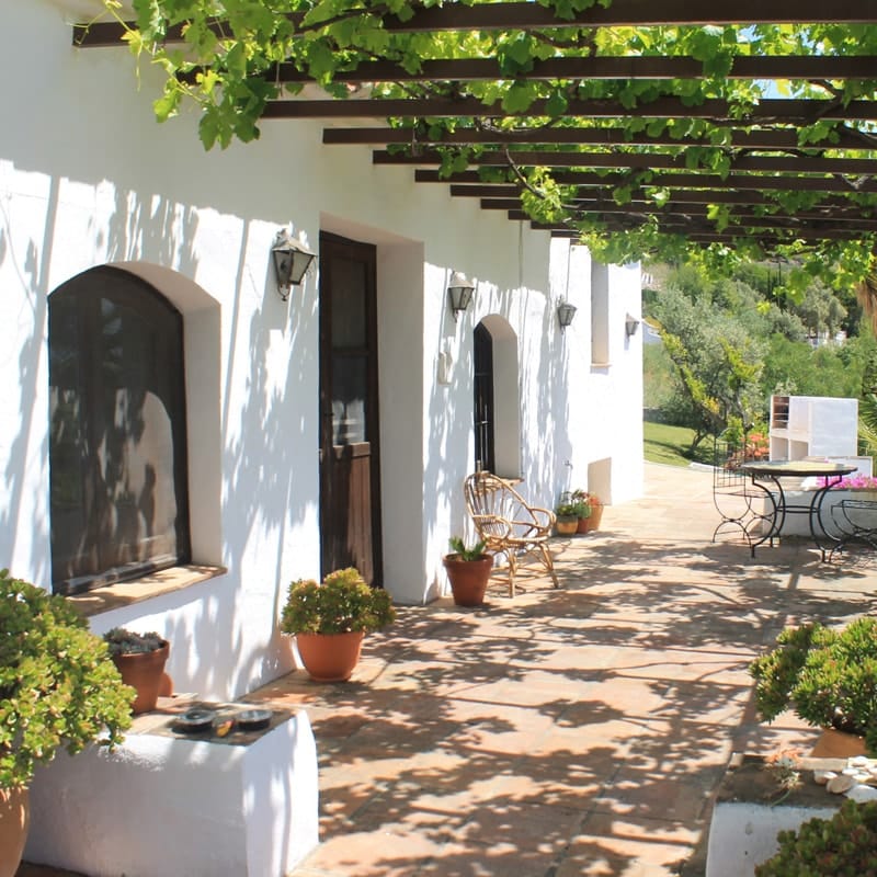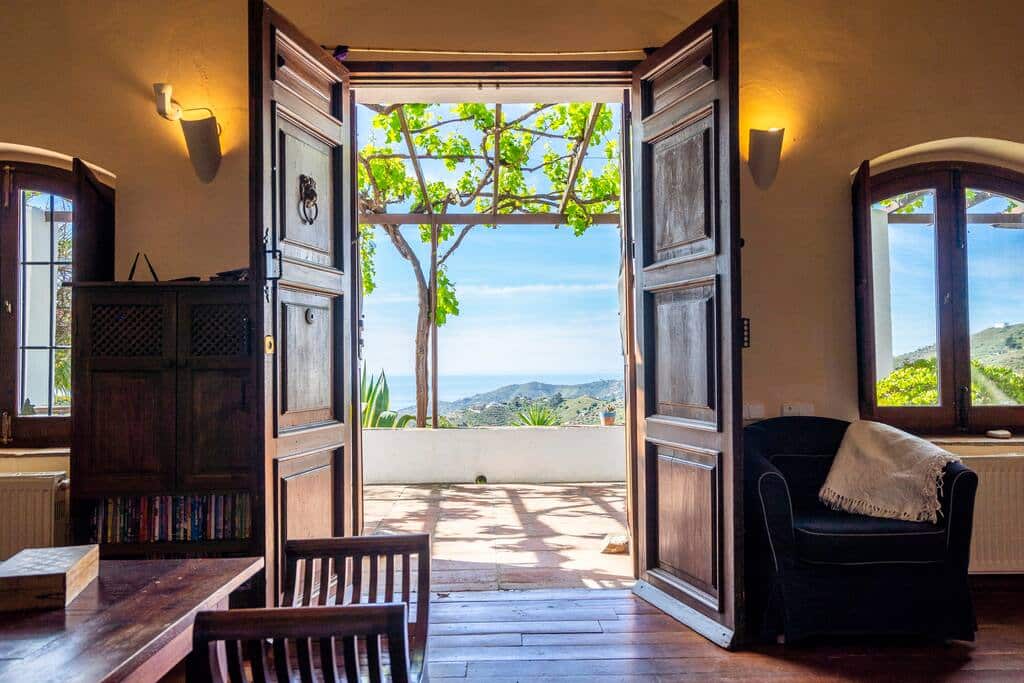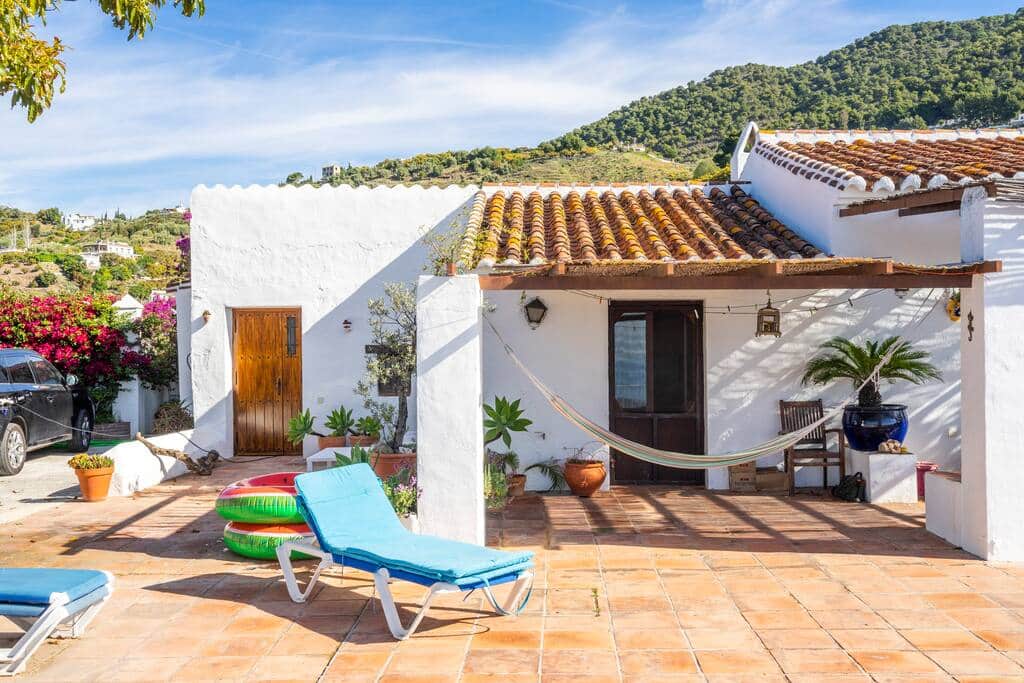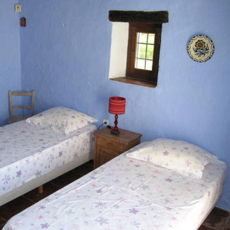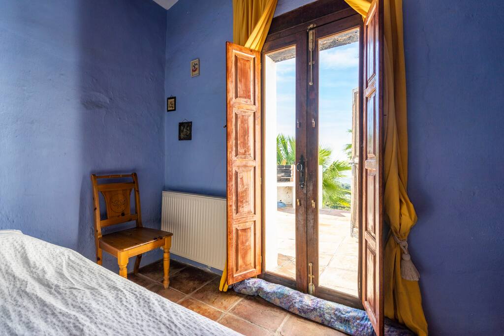 Los Almendros is Frigiliana’s most famous house because it’s the only truly intact Cortijo in the area. Built in the eighteenth century, it’s over 250 years old. For centuries, it was a wine farm, inhabited by a family and their farmhands, and it was a hive of activity every day. The walls of the donkey stable are still visible in the yard. Besides keeping chickens and goats, they produced wine, olive oil, and almond oil. An antique wine press stands in one of the bedrooms, and behind the house is an old bread oven where fresh bread was baked for everyone once a week. One of the rooms—the former “Bodega”—is carved entirely out of the rock. The house was recently restored as authentically as possible, preserving as many original details as possible. The large 3,000m² garden is filled with old fruit trees, such as oranges, avocados, limes, lemons, and pomegranates; feel free to pick!