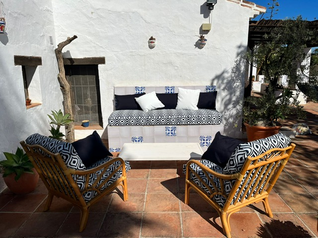 Het huis zelf? Prachtig. Met zorg en charmant ingericht, met elk klein detail dat bijdraagt aan de warmte en het karakter. Stap naar buiten en je vindt er een perfect onderhouden tuin en meerdere terrassen, elk met zijn eigen kleine stukje paradijs. We bezochten in januari/februari 2025, en ondanks dat het winter is in Zuid-Spanje, was het nog steeds heerlijk om buiten te zitten, minimale wind, veel zon en pure ontspanning.