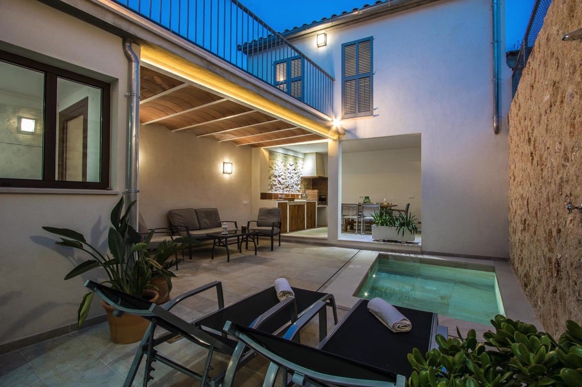 Búger is a small village, 36 km from Palma, where there are a few bars, a restaurant, a post office, a bakery for delicious fresh croissants, two shops for the basic necessities and a supermarket. The beach of Alcudia can be reached by car within 20 minutes and the town of Pollensa with numerous restaurants, terraces and bars as also closeby. The busier village of Inca, known for its Thursday market and leather shops, is just 10 minutes away. And Búger is also perfectly located for visits to the beautiful Tramuntana mountains.
