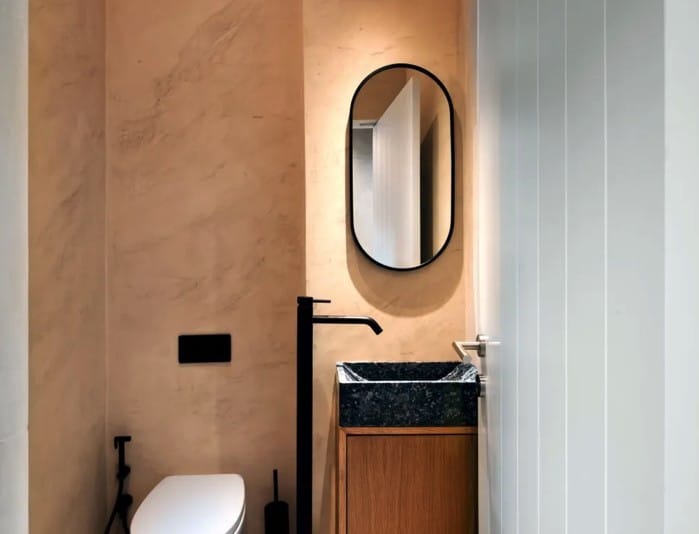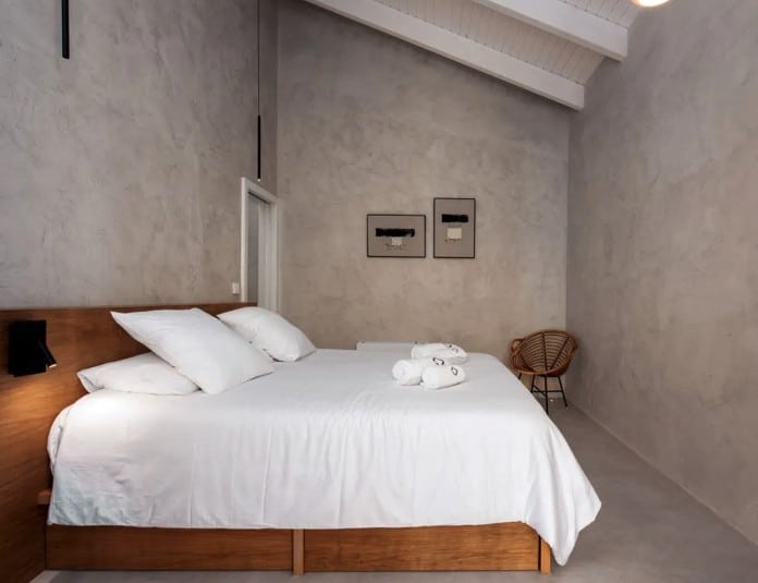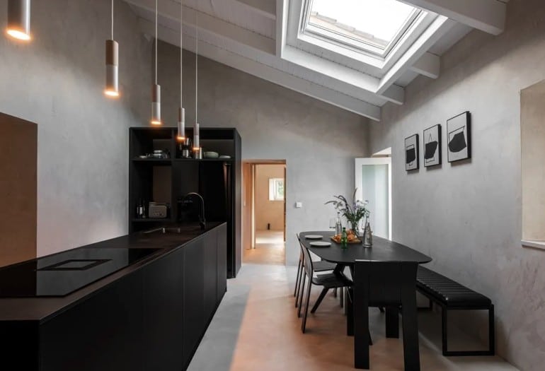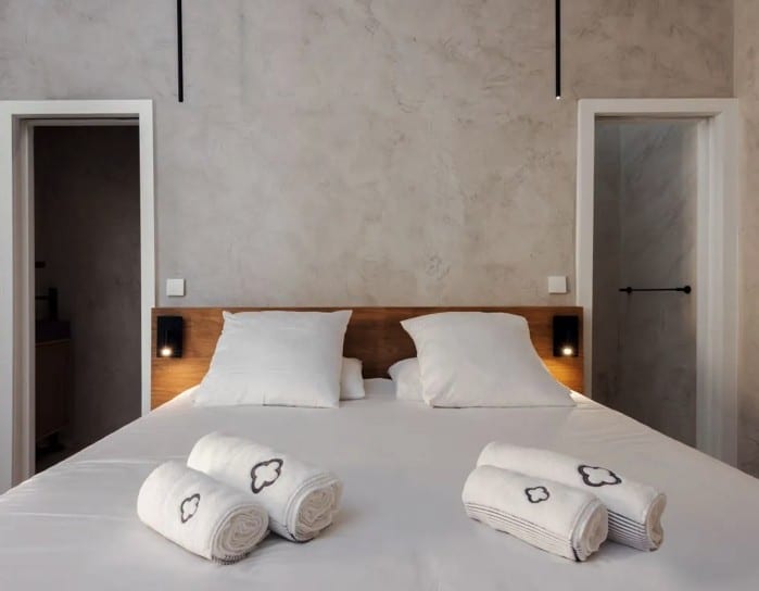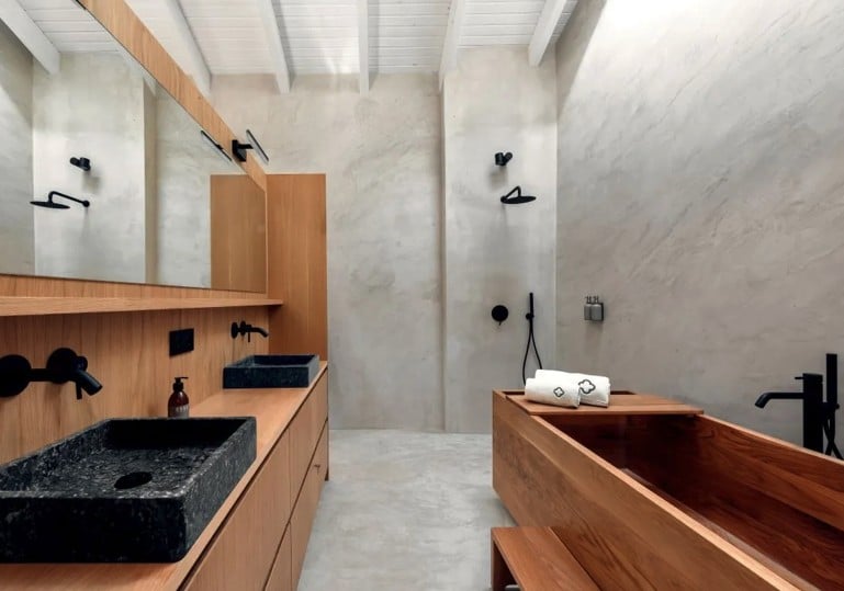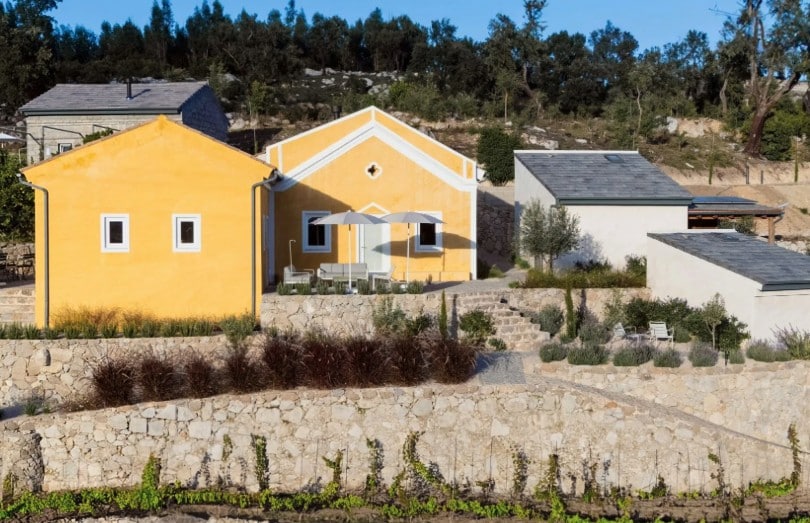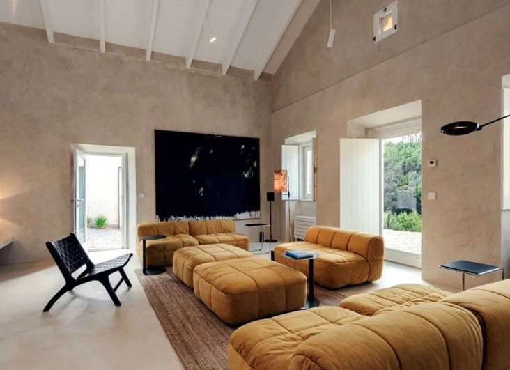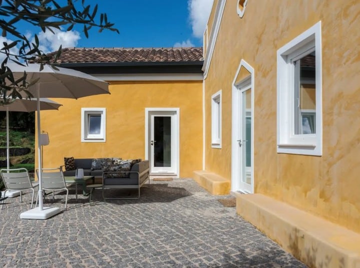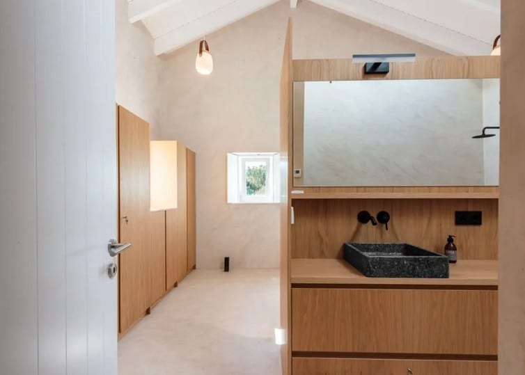 Het hoofdgebouw beschikt over een ruime woonkamer, keuken, hoofdslaapkamer en badkamer. Elke suite is zelfstandig en voorzien van een eigen badkamer met douche en toilet, wat zorgt voor extra gemak en comfort. Binnen voelt The Yellow House ruim en licht dankzij de hoge plafonds en de sfeervolle inrichting. In de woonkamer staat een grote vintage “Strips”-bank, ontworpen door de gerenommeerde Cini Boeri voor Arflex, gecombineerd met een originele Elle55-vloerlamp van Tommaso Cimini. Een houtkachel zorgt voor extra warmte en gezelligheid, terwijl de vloerverwarming – aangedreven door duurzame warmtepompen – in alle gebouwen voor een aangenaam binnenklimaat zorgt. De hoofdbadkamer is uitgerust met een op maat gemaakt massief eiken bad, ideaal om volledig tot rust te komen. In de badkamers vindt u ecologische verzorgingsproducten van het lokale Algarve-merk 8950 Cosmetica, gemaakt van natuurlijke ingrediënten.