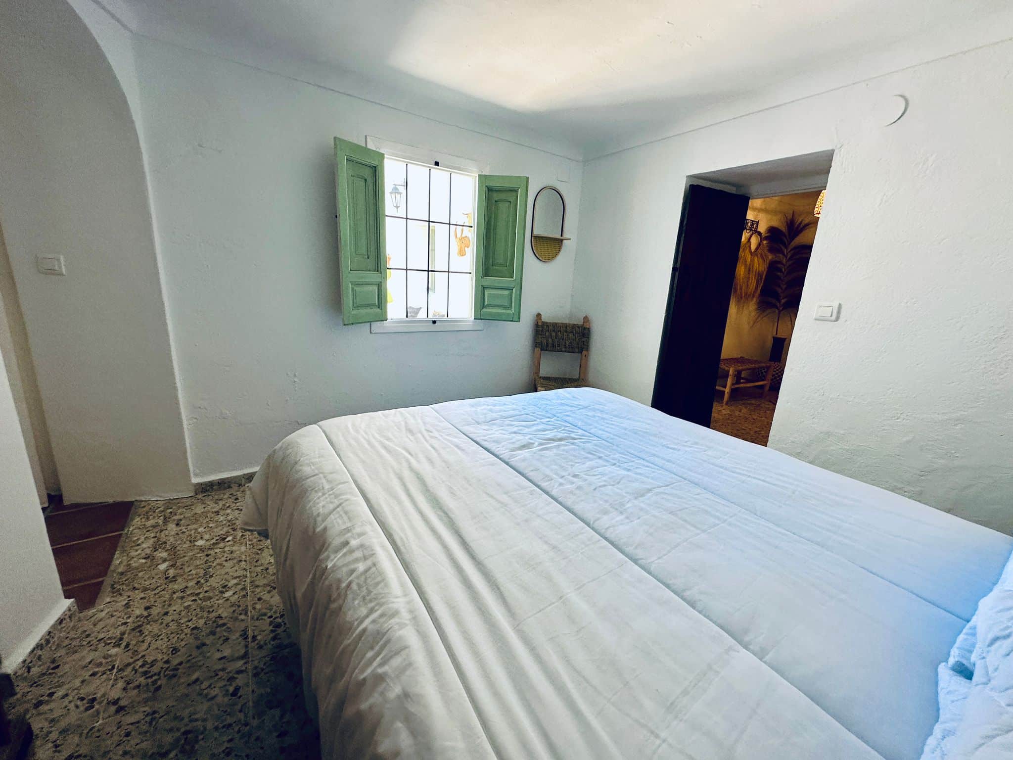 De vakantiewoning betreedt u via de gezellig ingerichte patio. U komt binnen in een ruime, leuk gedecoreerde hal. Zowel rechts als links bevindt zich een slaapkamer met heerlijk tweepersoonsbed, beide slaapkamers zijn voorzien van een kledingkast en plafondventilator. De bedden zijn opgemaakt met hoogwaardig linnen, en de dikke, authentieke muren zorgen ervoor dat het huis lekker koel blijft in de zomer, en behaaglijk in de winter. Beide slaapkamers beschikken over een ruime ensuite badkamer, met inloopdouche, wasbak en toilet.