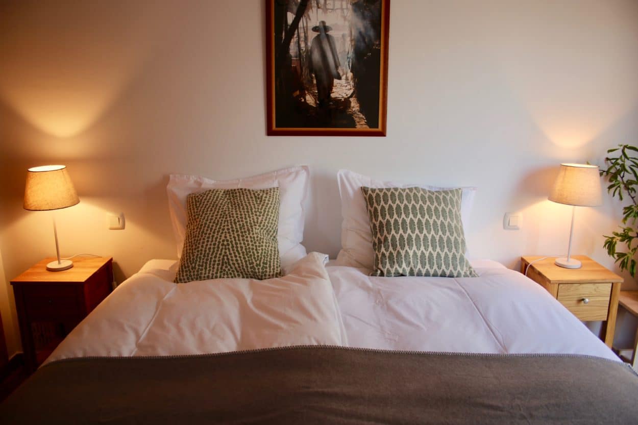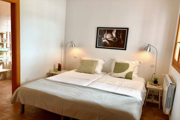 Er zijn twee slaapkamers, een met een tweepersoonsbed (1.80 x 2 m) en een met twee eenpersoonsbedden (0.90 x 2 m). Beide slaapkamers hebben een eigen badkamer met douche en toilet, een airco en een kastenwand.
