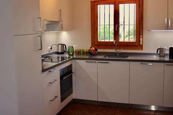 De keuken is compleet met oven, inductiekookplaat, een vaatwasmachine en een Nespresso-apparaat. In de aangrenzende bijkeuken staan een grote koelkast en een wasmachine.